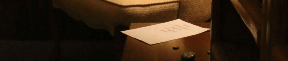As recommended by Nelms, I went through the entire run of the experience multiple times with different members of the team and marked those places where a player might question, stumble, break suspension of disbelief, or lose interest. In those places I either added ephemera (such as the series of experiment notes in the lab, the multiple inscribed copies of Annie on My Mind, the participant survey, etc.), or I pitched mechanics to the team (such as the use of blank stones in the room that were marked and returned to “replace” missing memory– and provide a way for players to see their and others’ cumulative mark on the evolving story of Julia Adler). The team got into the swing of it, too– Melissa suggested the multiple endings, while Maddie and I had an amazingly synergistic meeting that led to the concept of the only “bad” ending being that the love story isn’t an immediate happily-ever-after for our characters, and Shubham Sharma (the voice and developer of the Evil Professor character in “Home for the Holidays”) brought his fantastic character-work to bear to really develop and flesh out the TA. Our guiding principle, however, stayed Kathleen’s beautiful ideal of an experience that could be a safe and cozy one for players that are otherwise excluded from the more antagonistic escape-room-style interactive experience.