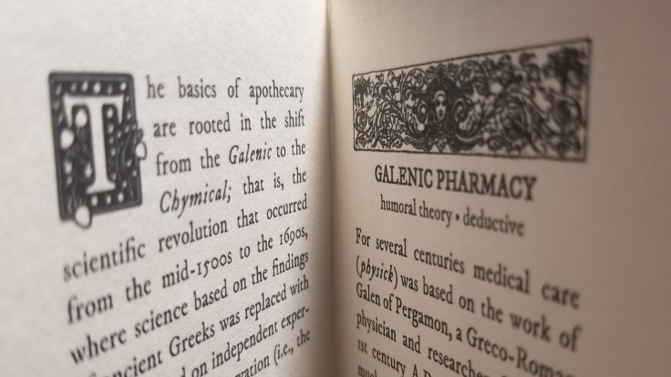 Regarding Galenical and Chymical Pharmacy is volume 2 of The Apothecary’s Pocket Companion collection, a folded octavo-sized minizine series intended to help others on their journey toward reading, researching, and recreating recipes from the European Scientific Revolution.