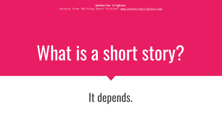 “What is a short story? (it depends)”: The slidedeck for the first lecture in my “Writing Short Fiction” course that helps frame how students can think about short stories ahead of starting to write them. (Note! This lecture assumes live instruction in parallel, and maybe, someday! I’ll add a recording to go with it.)